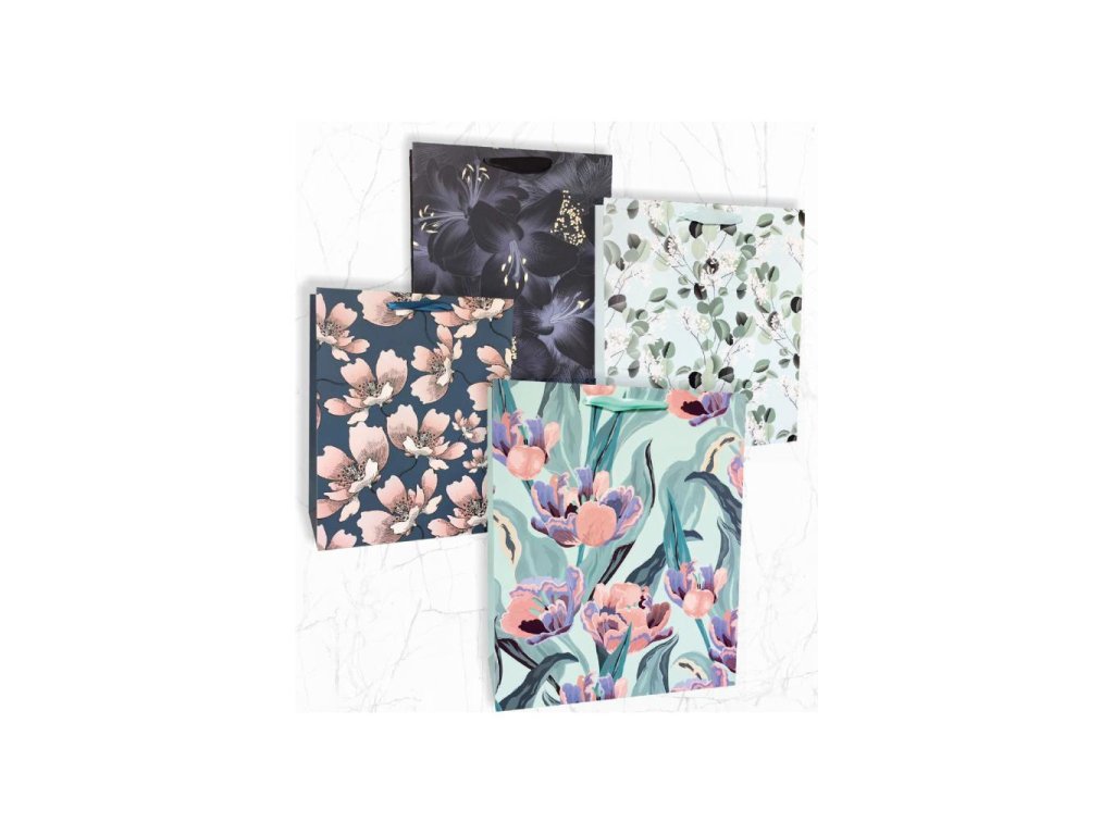 Papierová taška 260x320mmx120mm textilné ušká vo farbe tašky mix 4 motívov bez možnosti výberu Kvety