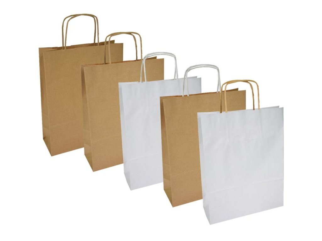 Papierová taška na víno a univerzálne použitie. Farba biela. Ušká stáčané. Cena za kus. Rozmery v mm