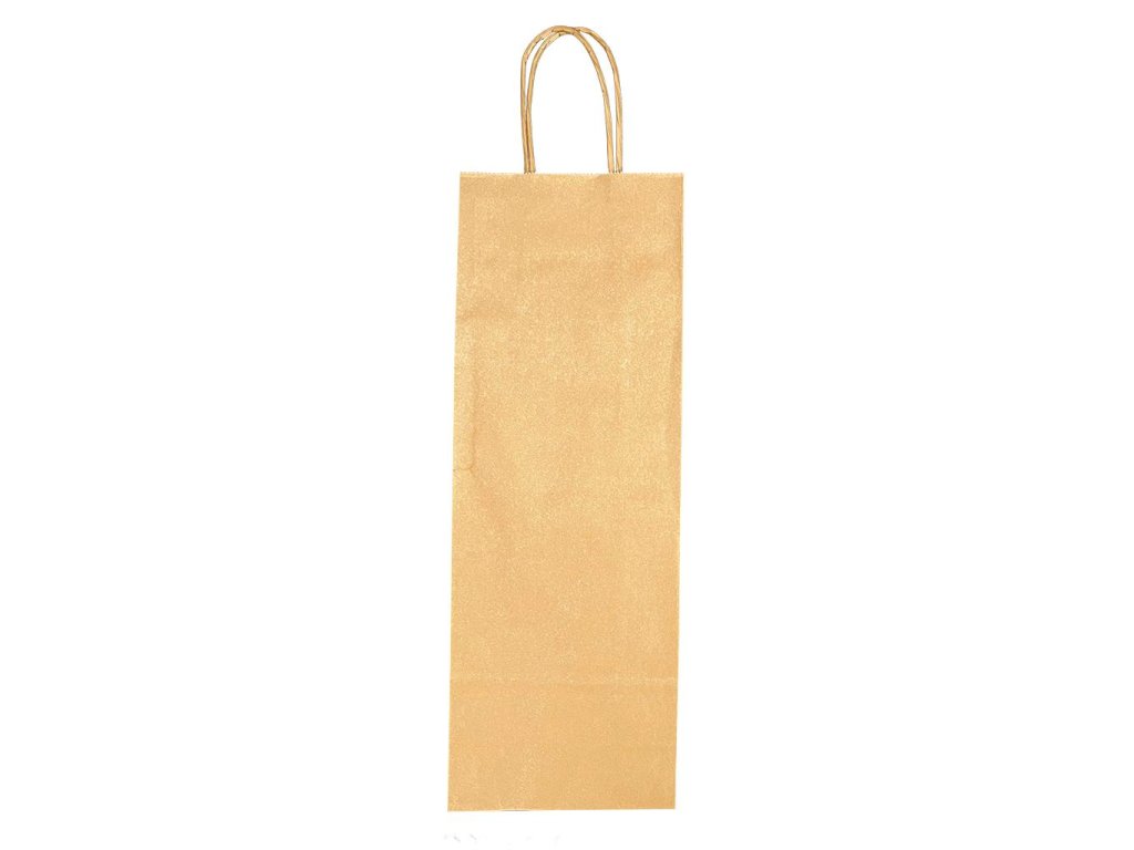Papierová taška na víno. Farba zlatá. Ušká stáčané. Gramáž papiera 110g. Cena za kus. Rozmery v mm