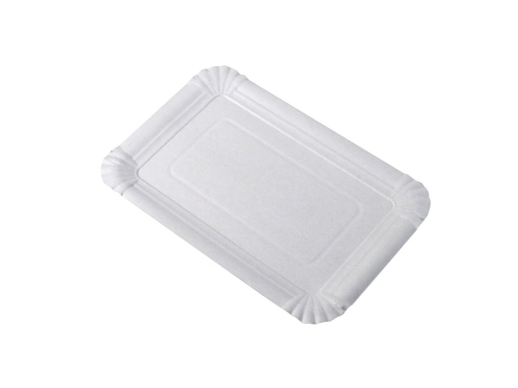 Jednorazové papierové tácky so zvýšeným okrajom, hygienicky balené. Rozmery 130×200 mm. Balenie 100 ks. Farba biela.