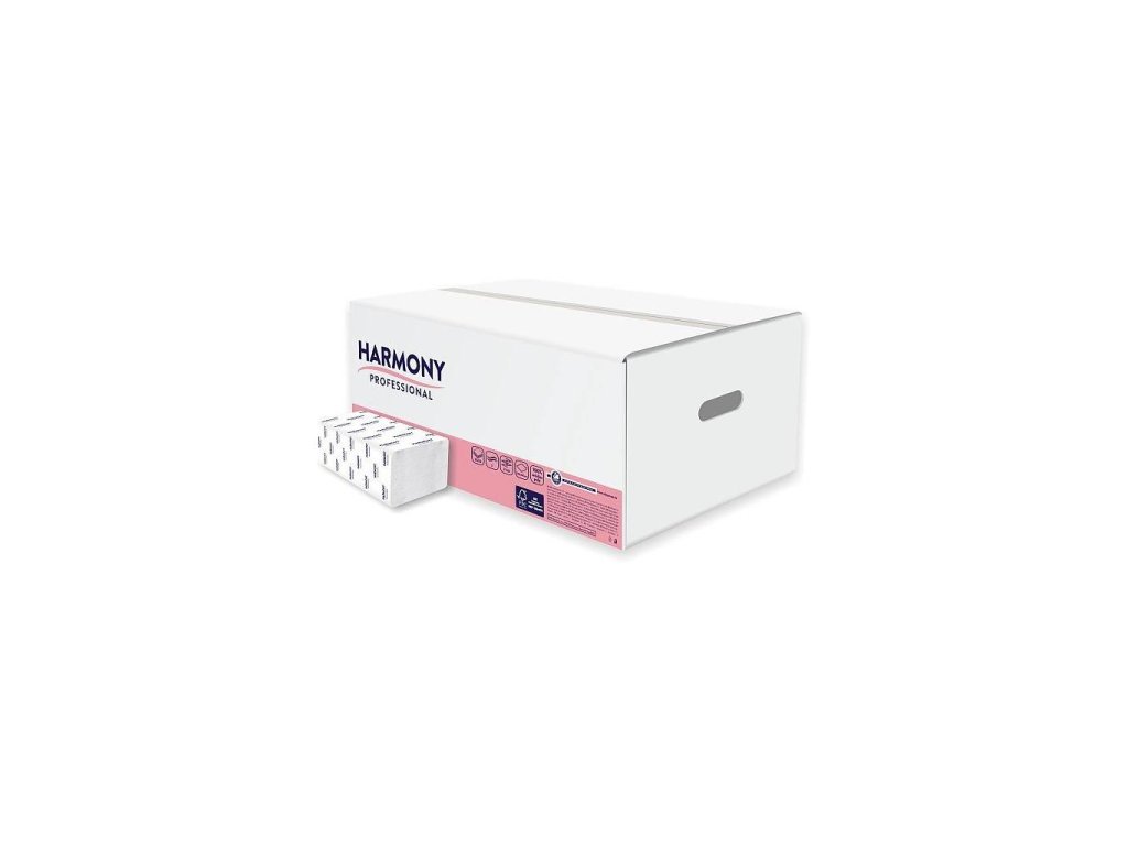 Dvojvrstvové papierové Utierky Harmony Professional skladané, biele zo 100% celulózy.
