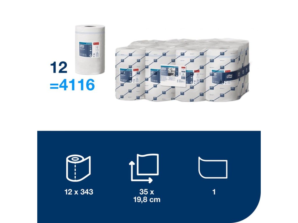 Jednovrstvová viacúčelová papierová utierka Tork Reflex™ je ideálna na stieranie a ručné utieranie vďaka svojej sile a vysokej absorpcii. Túto papierovú utierku možno použiť v Tork Reflex™ mini zásobníku so stredovým odvíjaním na dávkovanie po jednom útržku, ktorý znižuje spotrebu a minimalizuje riziko krížovej kontaminácie. V predaji po balení (12 roliek).