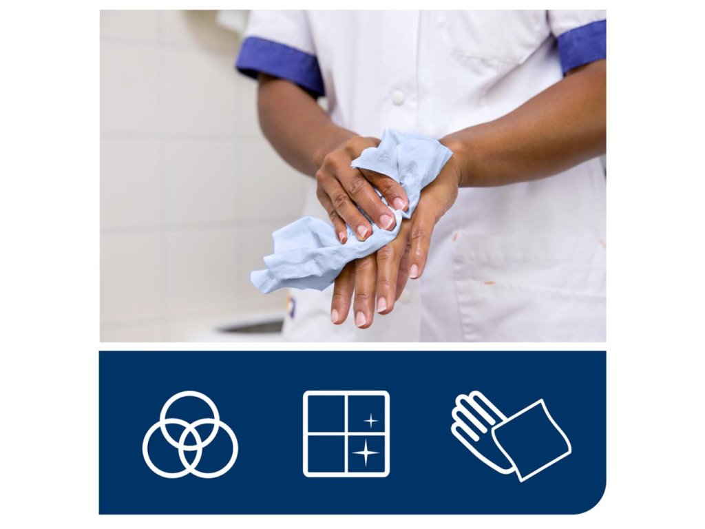 Tork Basic dvojvrstvová papierová utierka je ideálna na základné úlohy utierania, na ručné utieranie a tam, kde je dôležitá úspora nákladov. Táto papierová utierka sa môže používať v Tork® zásobníku na kotúče so stredovým odvíjaním, ktorý je vysokokapacitným, viacúčelovým riešením pre profesionálne prostredia, kde sú na utieranie povrchu potrebné obe ruky.
