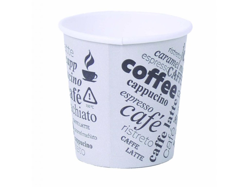 Jednorazové papierové poháre na kávu s motívom. Objem 0,12 l, vhodný pre nápoje s objemom 0,1 l. dodávané v balení po 50 ks.
