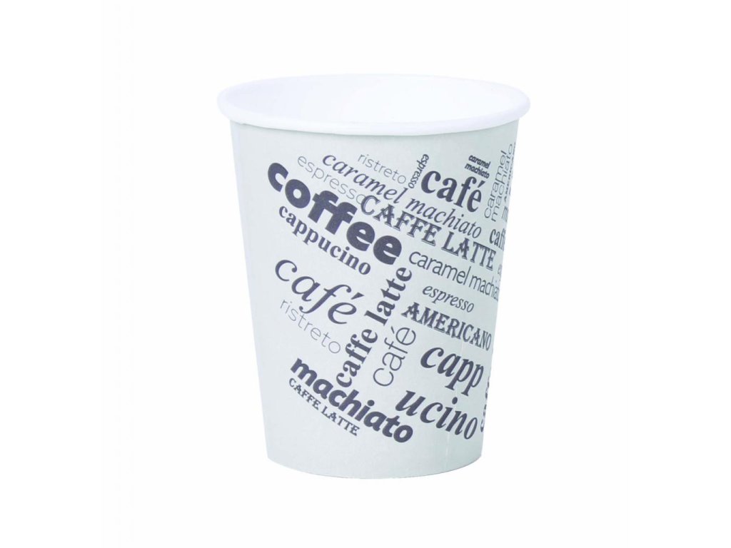 Jednorazové papierové poháre na kávu s motívom. Objem 0,28 l, veľkosť M, vhodný pre nápoje s objemom 0,2l. Priemer 80 mm, dodávané v balení po 50 ks.