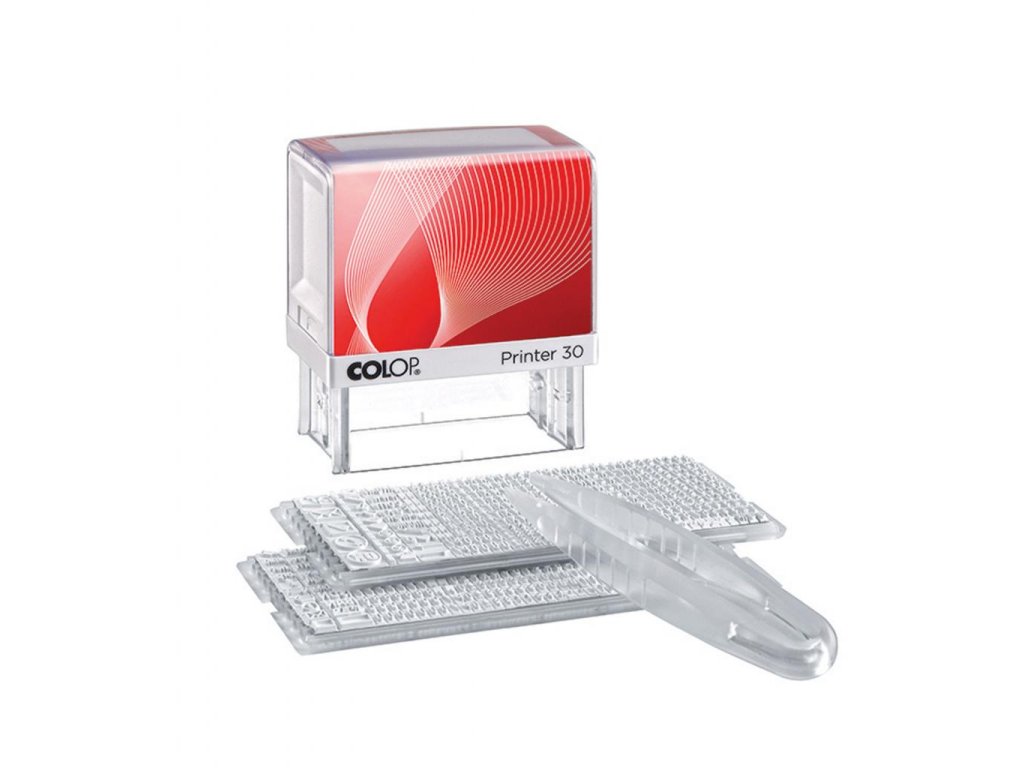 Súprava Printer 20/ 1 Set pre maximálne 4 riadky textu je dodávaná vrátane pečiatkovej podušky, typovej sady 3,5 mm a pinzety. Náhradná poduška E/20 čierna. Veľkosť odtlačku: 38 x 14 mm.