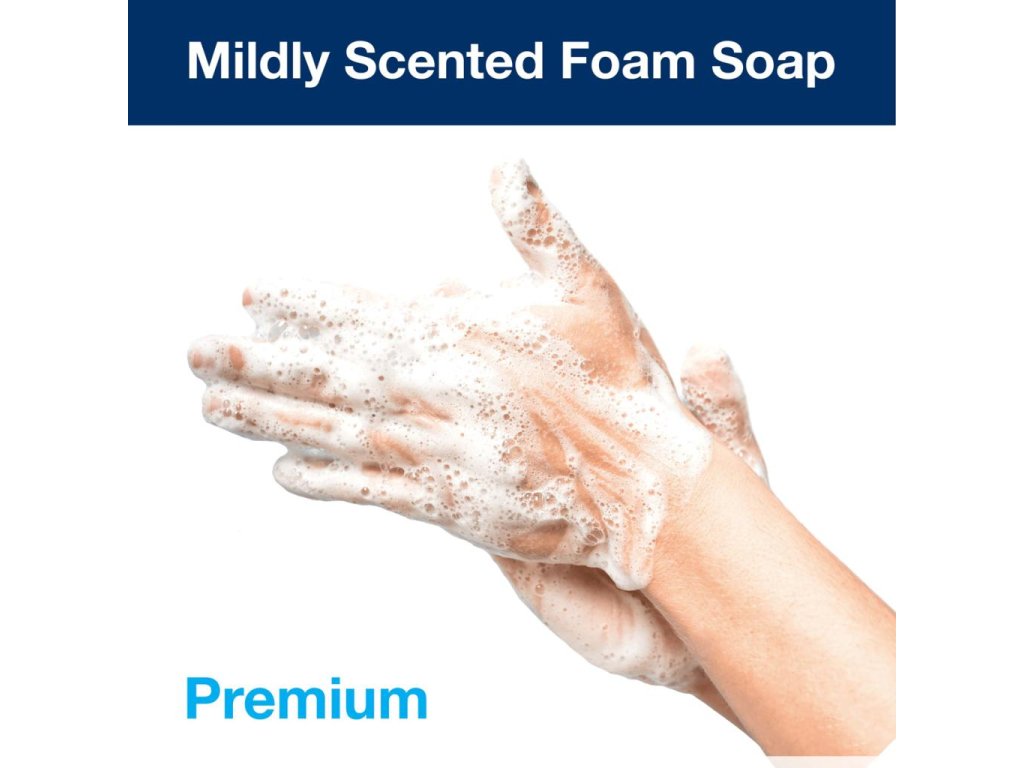 Z dávkovača vypusťte mydlo na mokré ruky, vytvorte penu, opláchnite a osušte jednorazovou papierovou utierkou.