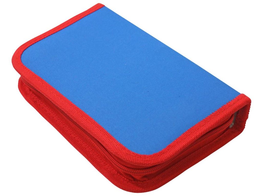 Plný 1-zipsový peračník, 2-chlopňový, 6 rôznych farieb (olivová, modro-červená, tyrkysová, zeleno-modrá, čierno-oranžová, sivo-ružová), 32 kusov (obsah: 1 rozvrh hodín, 1 poznámkový blok bez riadkov, 1 pravítko, 12 farebných ceruziek, 1 guma, 1 strúhadlo, 2 ceruzky, 13 fixiek), materiál polyester, ŠxVxH: 195x36x130mm, hmotnosť 330g.