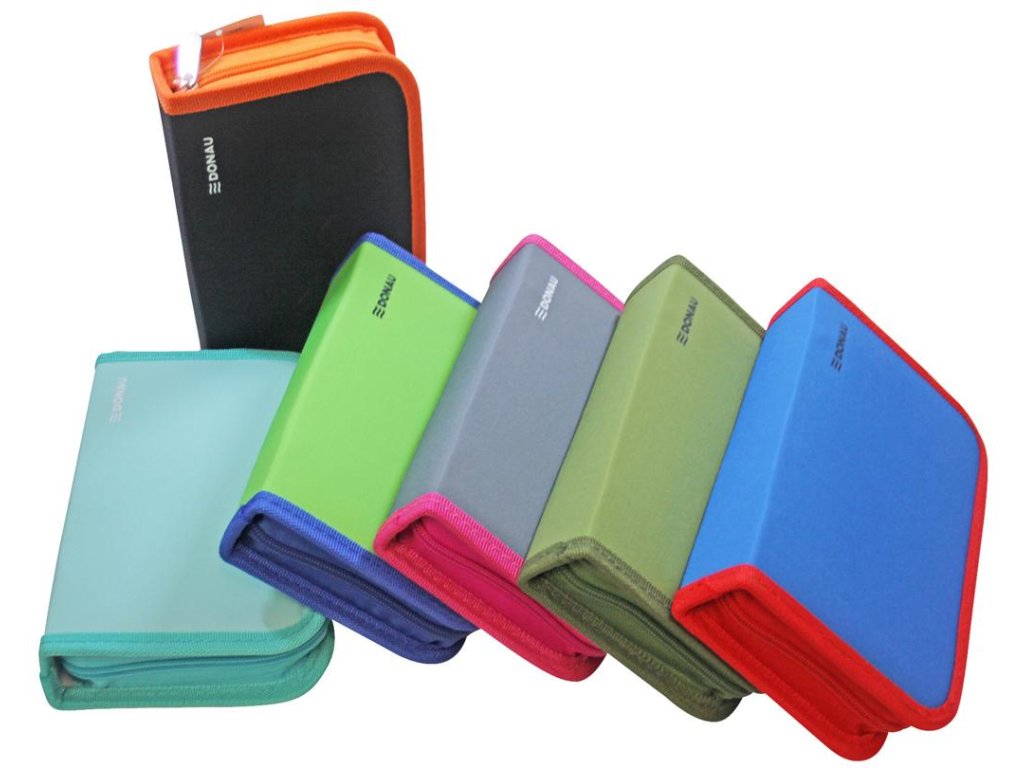 Peračník DONAU 1-zipsový 2-klopý plný, mix farieb, bal. 12 ks