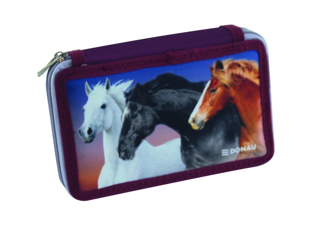 Peračník 2-zipsový s výbavou, v 6 rôznych dizajnoch. S praktickým vnútorným vreckom na drobnosti, vyrobený z odolného polyesterového materiálu. Výbava (23 dielov): 1 guma, 1 strúhadlo, 3 ceruzky, 1 pravítko, 1 rozvrh hodín, 8 fixiek, 8 farebných ceruziek. Rozmery: Š x V x H: 200 x 40 x 130 mm.