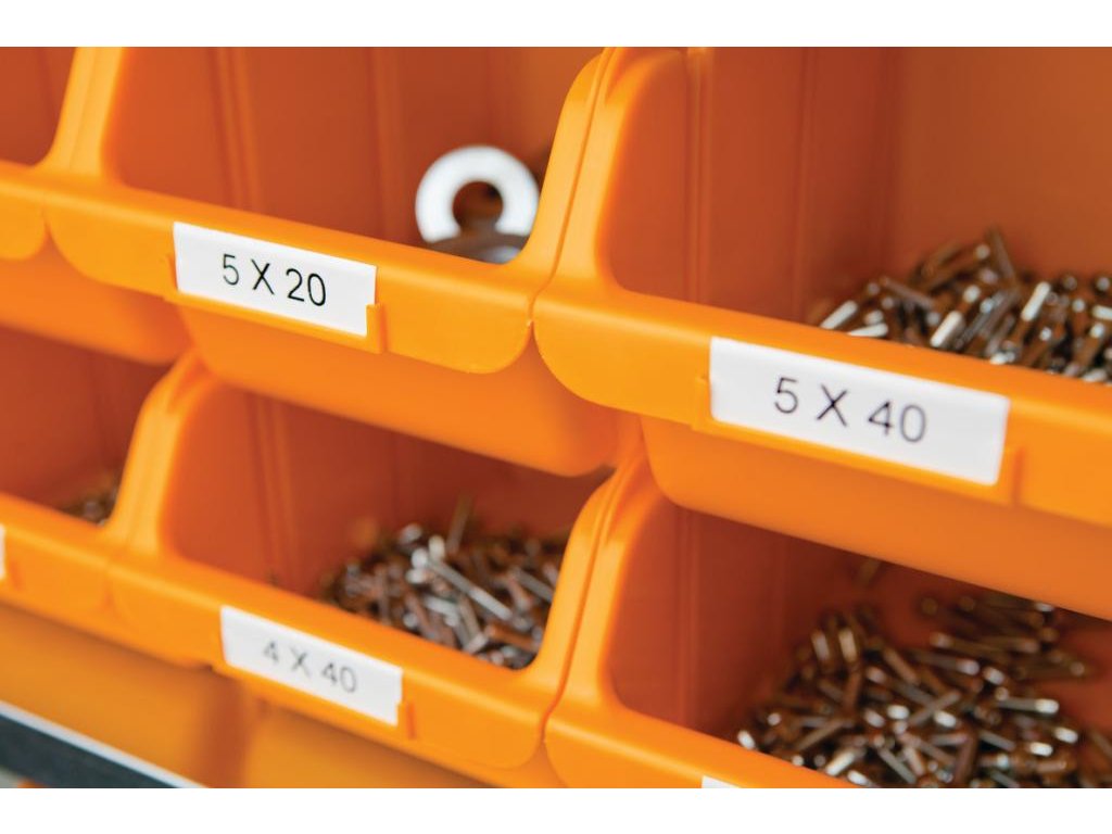 Pásky s rovnakým vzhľadom ako samolepiace pásky D1, ponúkajúce kvalitné permanentné lepidlo pre prípady, keď sa vyžaduje neobmedzená trvanlivosť prilepeného štítku. Sú určené do etiketovacích zariadení DYMO radu Rhino a LM s aplikáciou v uzavretých i otvorených priestoroch. Poskytujú široký výber použitia na povrchoch rovných, hladkých, s textúrou alebo s výraznou textúrou. Sú odolné voči rozdielom teplôt, vode, ultrafialovému žiareniu, olejom, rozpúšťadlám a chemickým látkam. Dĺžka pásky 5,5 m. Farba pásky biela, písmo čierme. Šírka pásky 12 mm.