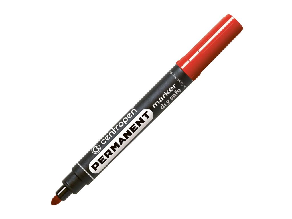 Permanentný popisovač s nevysýchajúcim atramentom (vydrží aj 14 dní bez vrchnáka) na alkoholovej báze, vhodný na väčšinu povrchov. Odolný voči vode, poveternostným podmienkam aj oderu. Hrot okrúhly, šírka stopy 2,5 mm. Väčšie balenie 10 ks v jednej farbe. Farba červená.