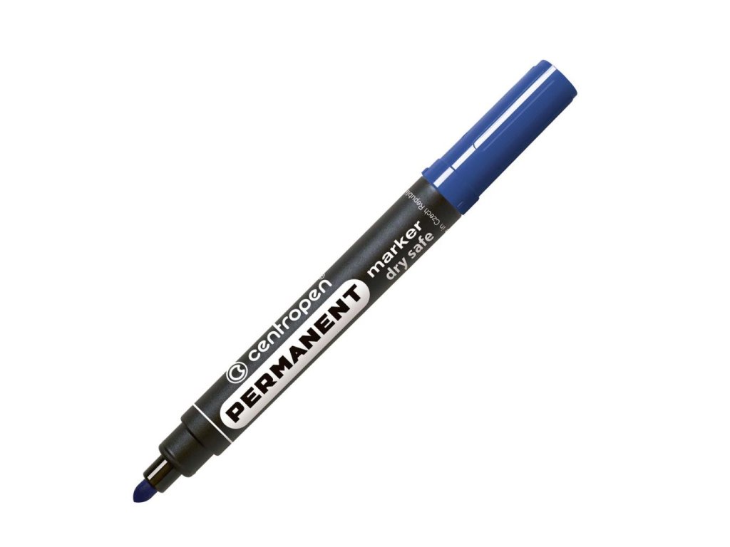 Permanentný popisovač s nevysýchajúcim atramentom (vydrží aj 14 dní bez vrchnáka) na alkoholovej báze, vhodný na väčšinu povrchov. Odolný voči vode, poveternostným podmienkam aj oderu. Hrot okrúhly, šírka stopy 2,5 mm. Väčšie balenie 10 ks v jednej farbe. Farba modrá.