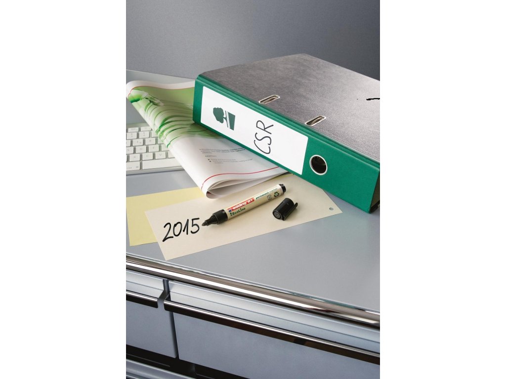 Permanentný popisovač vhodný na trvanlivé popisovanie, značenie, maľovanie a vyznačovanie takmer na všetky materiály, dokonca na kov, sklo a umelú hmotu. Minimálne 80 % plastovej časti je vyrobených z recyklovaného materiálu. Okrúhly hrot, šírka stopy 1,5 - 3 mm. Rýchloschnúci, vodeodolný, slabo zapáchajúci atrament intenzívnej farby bez obsahu toluénu/ xylénu. Väčšie balenie 10 ks.
