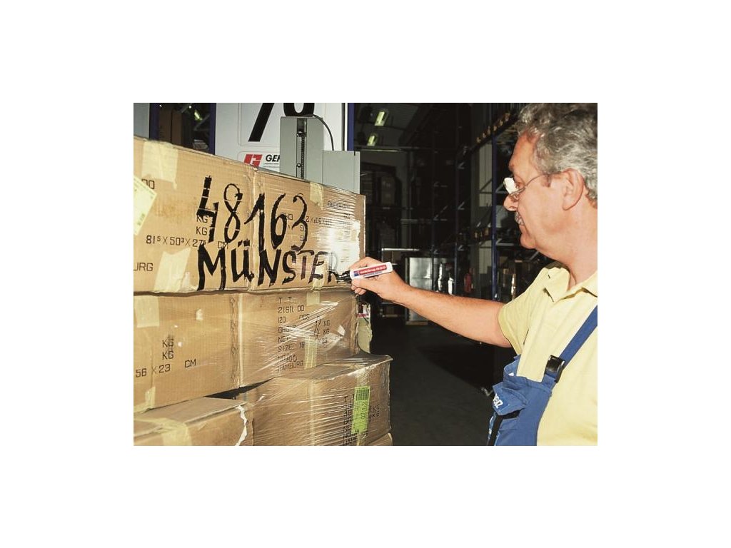 Permanentný popisovač s hliníkovým obalom a vymeniteľnou špičkou. Hrot zrezaný, hrúbka 5 - 16 mm. Väčšie balenie 5 ks.