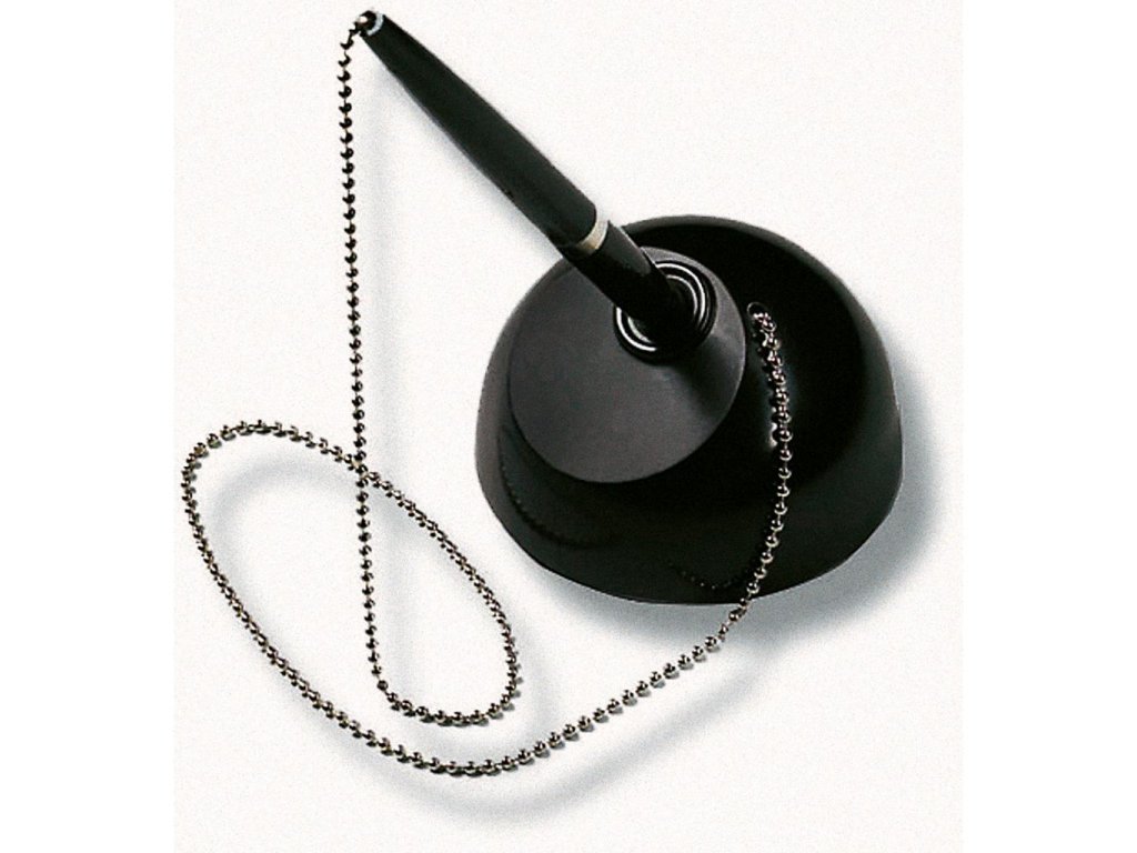 Pero s lesklou pochrómovanou retiazkou, spojenou s guľovitým podstavcom. Farba náplne čierna.