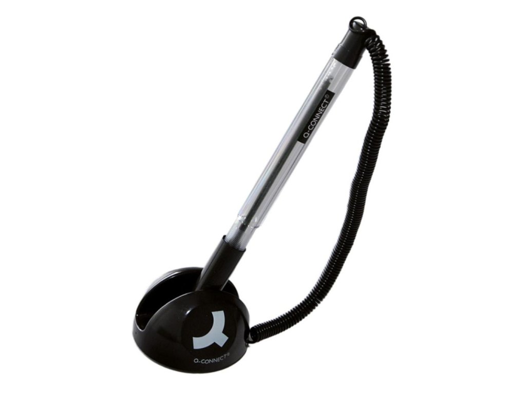 Plastové pero moderného dizajnu na stojane s prilepovacou základňou azabudovaným magnetom umožňujúcim montáž na kovové povrchy. S možnosťou nastavenia uhla sklonu, spojené s retiazkou. Vhodné pre verejné miesta, ako sú pošty, recepcie, kancelárie, sekretariáty a pod. Farba stopy čierna. Bez možnosti dokúpenia náhradnej tuhy. Väčšie balenie 12 ks.