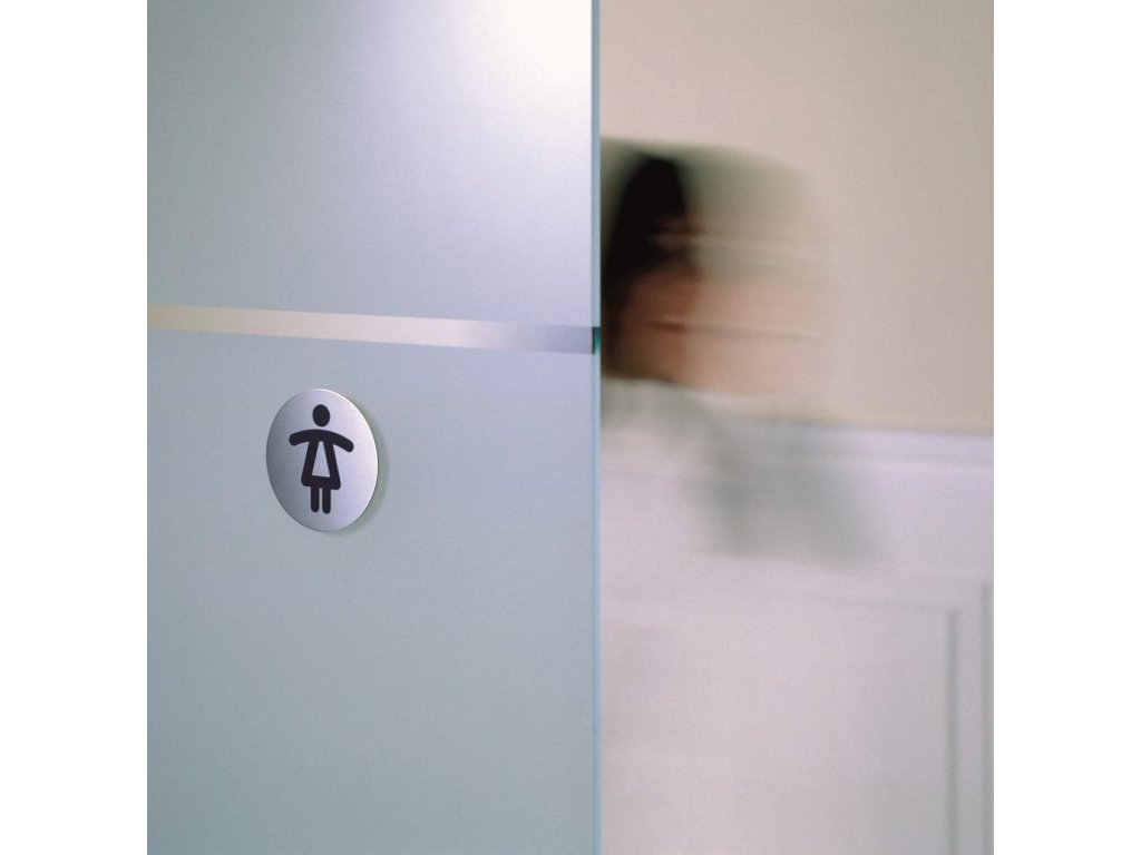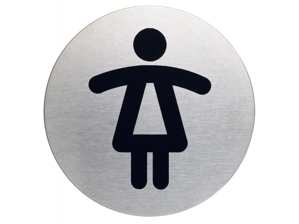 Piktogram na vysoko kvalitnej brúsenej nehrdzavejúcej oceli. Vytlačený symbol je odolný voči poškriabaniu a silnému opotrebeniu. Priemer 83 mm, vďaka lepiacej páske na zadnej strane sa piktogram dá použiť na rôzne povrchy. Farba strieborná, potlač čierna.