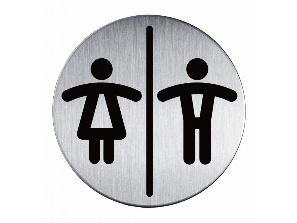 Piktogram na vysoko kvalitnej brúsenej nehrdzavejúcej oceli. Vytlačený symbol je odolný voči poškriabaniu a silnému opotrebeniu. Priemer 83 mm, vďaka lepiacej páske na zadnej strane sa piktogram dá použiť na rôzne povrchy. Farba strieborná, potlač čierna.