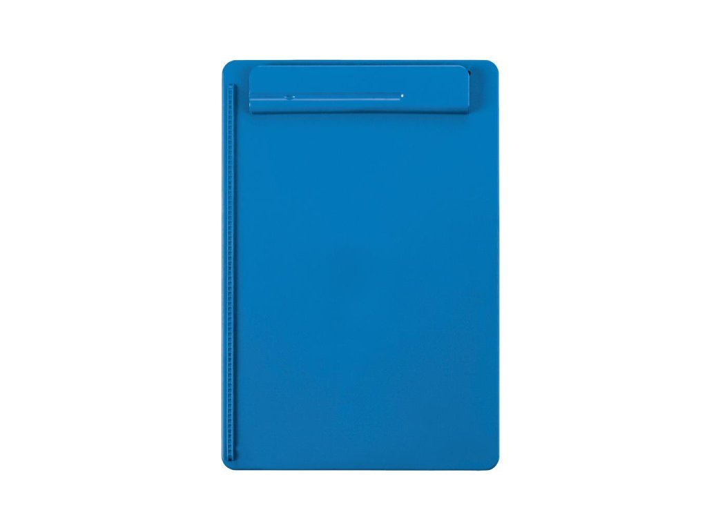Podložka na písanie z recyklovaného plastu, vyrobená udržateľným a sociálne zodpovedným spôsobom. Zarážka papiera vľavo, integrovaný držiak na písacie potreby. Široká svorka so silnými kovovými pružinami. Šírka spony cca 0,8 cm, hrúbka 0,3 cm. Rozmer 34,3 x 23,3 x 1,6 cm. Farba modrá.