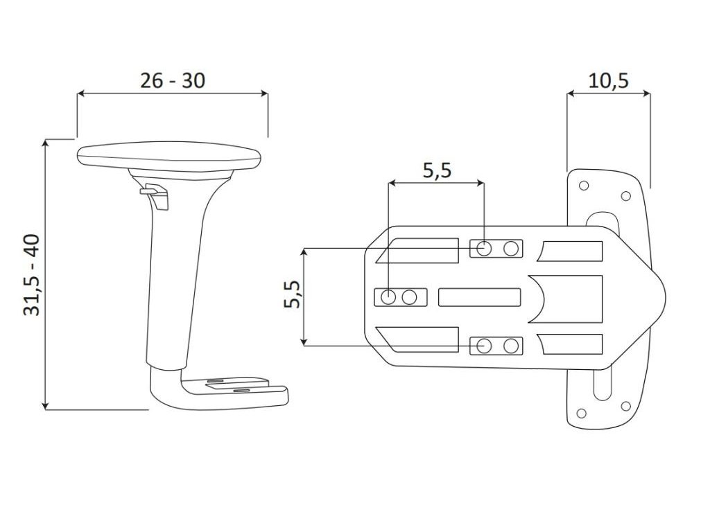 Plastové podrúčky výškovo nastaviteľné 4D k stoličke 1380 Flute, 1390 Tullio, 1540 Asyn, 1580 Gala, 1640 AThea, 1690 New Pure, 1750 Skill, 1850 Omnia, 1870 Motion, 1880 Armin, 1930 Eclipse, 5030 Nella, Rossa
