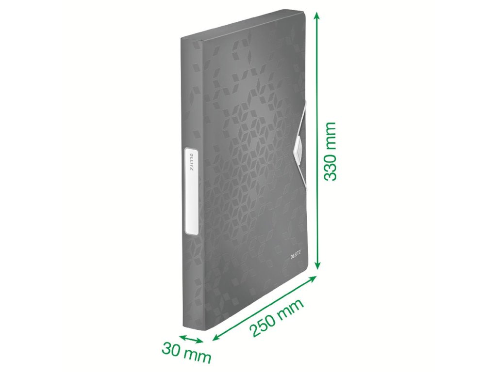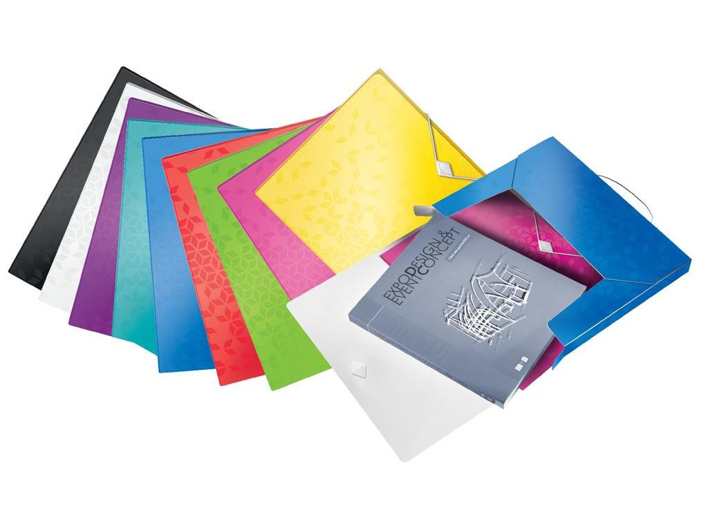 Nepriehľadný polypropylénový box na prenos objemnejších spisov, cenníkov, katalógov a pod. do formátu A4. V dizajne rady WOW v žiarivých farbách. Praktické zatváranie gumičkou na kovový krúžok. Rozmery (v × h × š) 330 × 250 × 30 mm. Väčšie balenie 5 ks. Farba červená.