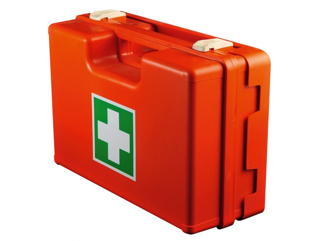 Kufrík s prepážkami a držadlom na stenu. Materiál ABS plast, odolný voči nárazom, nehorľavý a vodotesný. Možnosť naplniť akoukoľvek náplňou. Dodávaný prázdny. Rozmery 27 × 19 × 12 cm.