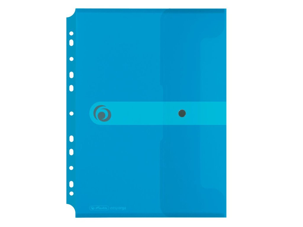 Plastové obaly Herlitz Easy Orga z priehľadného PP s uzatvárateľnou klopou s cvočkom a eurodierovaním. Formát A4, kapacita 200 listov. Farba priehľadná modrá.