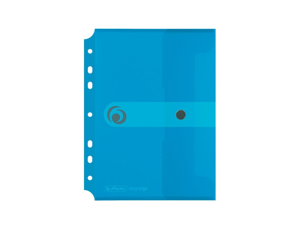 Plastové obaly Herlitz Easy Orga z priehľadného PP s uzatvárateľnou klopou s cvočkom a eurodierovaním. Formát A5, kapacita 200 listov. Farba priehľadná modrá.