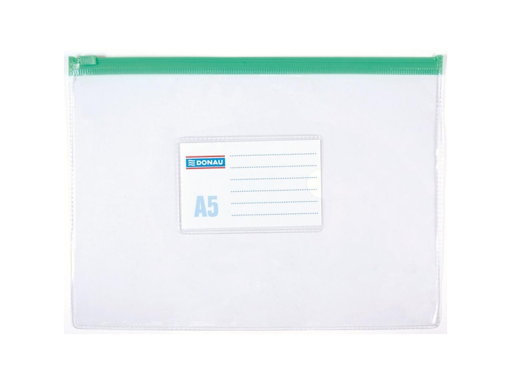 Plastový obal z PVC s uzatváraním na zips a štítkom na popis. Formát A5, rozmery 240 x 180 mm. Väčšie balenie 24 ks.
