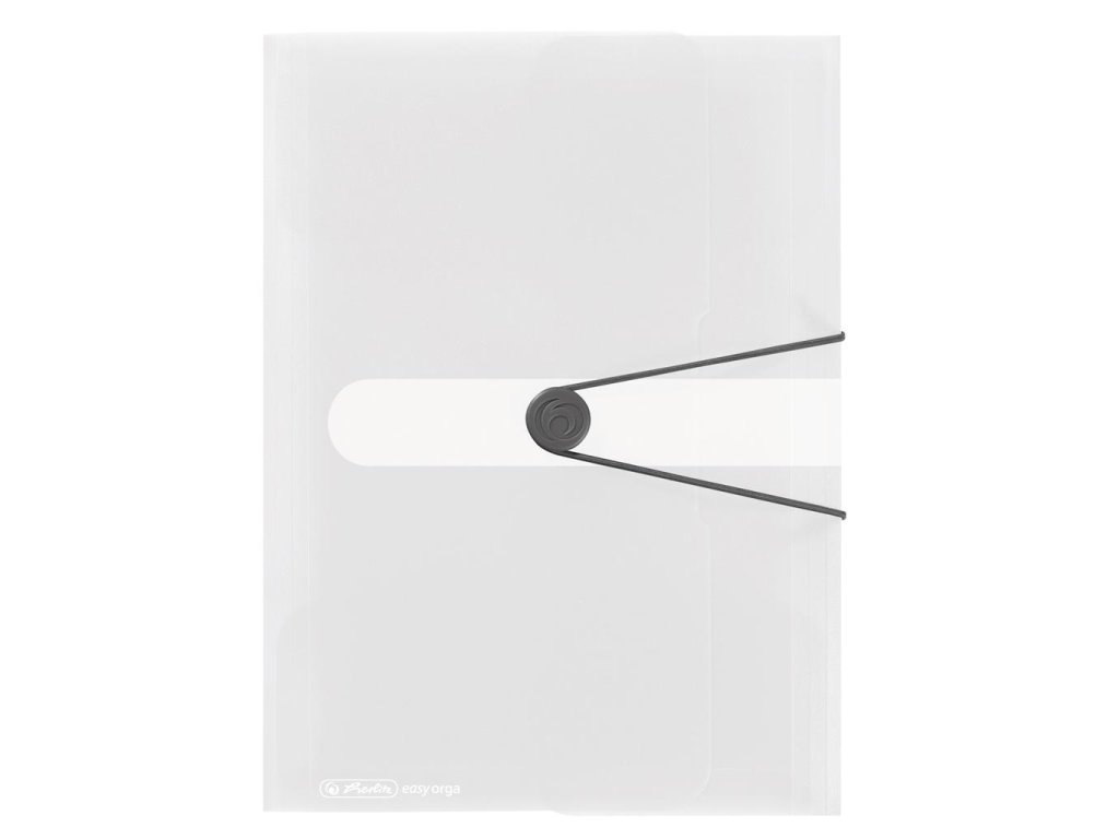 Kvalitný trojchlopňový plastový obal A4 Easy Orga. Materiál polypropylén. Kapacita 300 listov, zatváranie gumičkou o plastový krúžok. Farba číra.