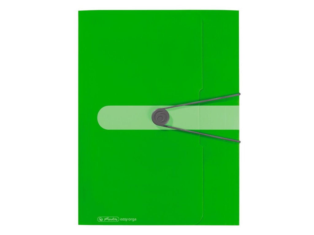 Obal s tromi chlopňami radu Easy Orga z polypropylénu na dokumenty formátu A4. Kapacita 300 listov. Zatváranie sivou gumičkou o sivý plastový krúžok. Väčšie balenie 3 ks. Farba zelená.