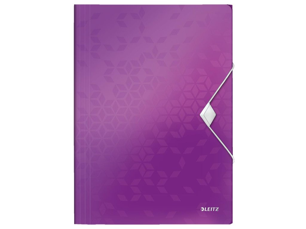 Trojchlopňový obal na dokumenty do formátu A4 z polypropylénu. V dizajne rady WOW v žiarivých farbách. Uzatváranie uchytením na gumičku. Kapacita 150 listov. Väčšie balenie 10 ks. Farba purpurová.