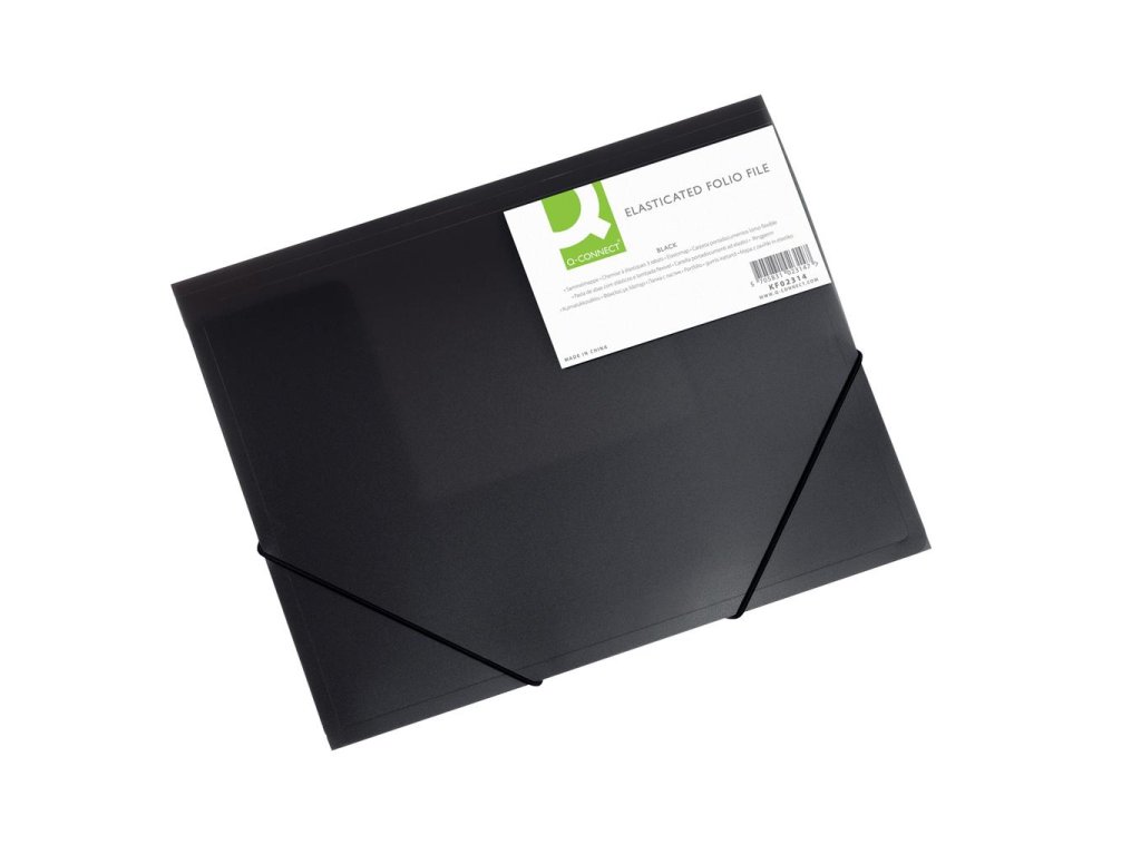 Transparentný plastový obal formátu A4 s tromi chlopňami z polypropylénu s gumičkou. Farba čierna.