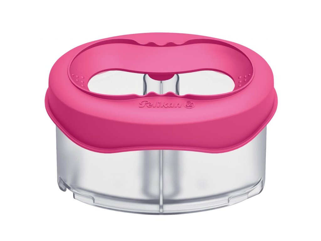 Nádoba na vodu - priehľadná s úchytom, ktorý umožňuje pripojiť nádobu na vodové farby, aby sa zamedzilo vyliatiu vody. Kompatibilná s vodovými farbami Pelikan K12 a Space+. Na vrchu nádoby umiestnený držiak na položenie štetca. Farba ružová.