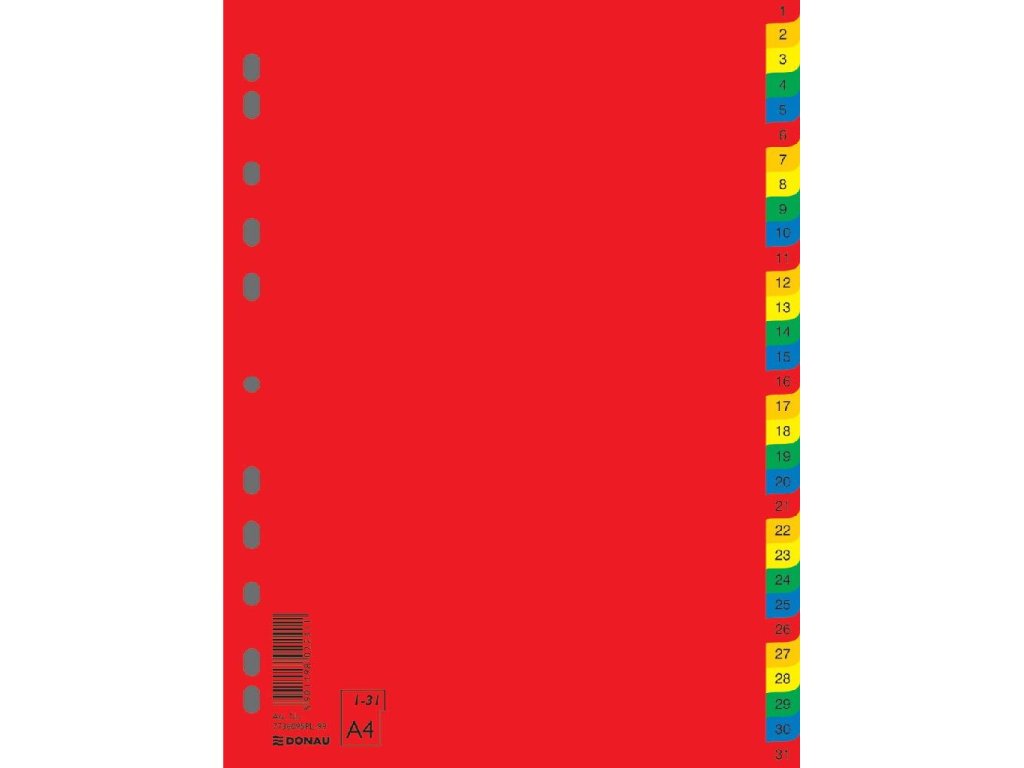 Rozraďovač formátu A4 vyrobený z tuhého polypropylénu. Jednotlivé stránky v rôznych farbách, multiperforácia na použitie rozraďovača v krúžkovom aj pákovom zakladači. Väčšie balenie 10 sád.