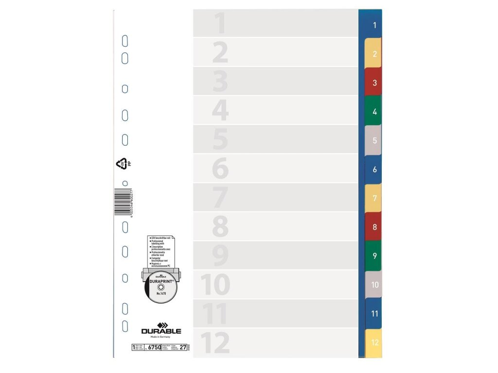 Farebný číselný rozraďovač vyrobený zo zosilneného plastu s eurodierovaním, popisovateľný papierový titulný list na ľahkú orientáciu v dokumentoch. Výsledný dokument pôsobí upravene a reprezentatívne. Väčšie balenie 20 sád.