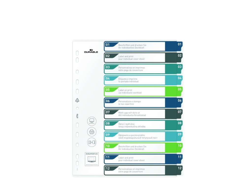 Plastový rozraďovač DURABLE 1-12 potlačiteľný farebný