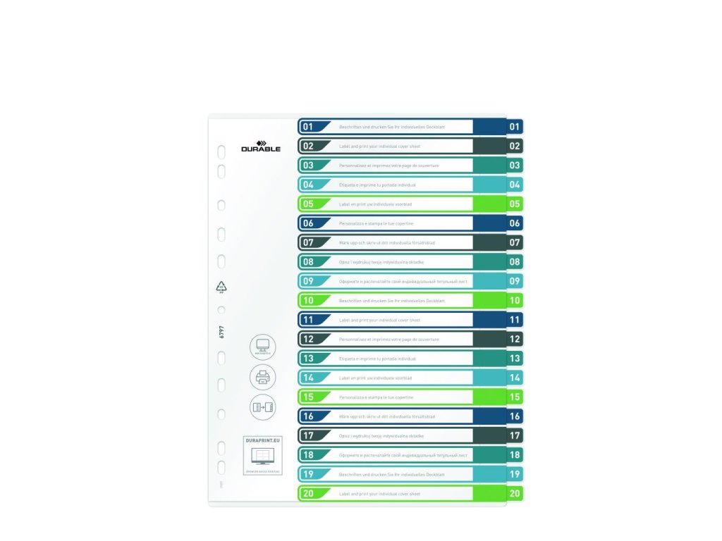 Plastový rozraďovač DURABLE 1-20 potlačiteľný farebný