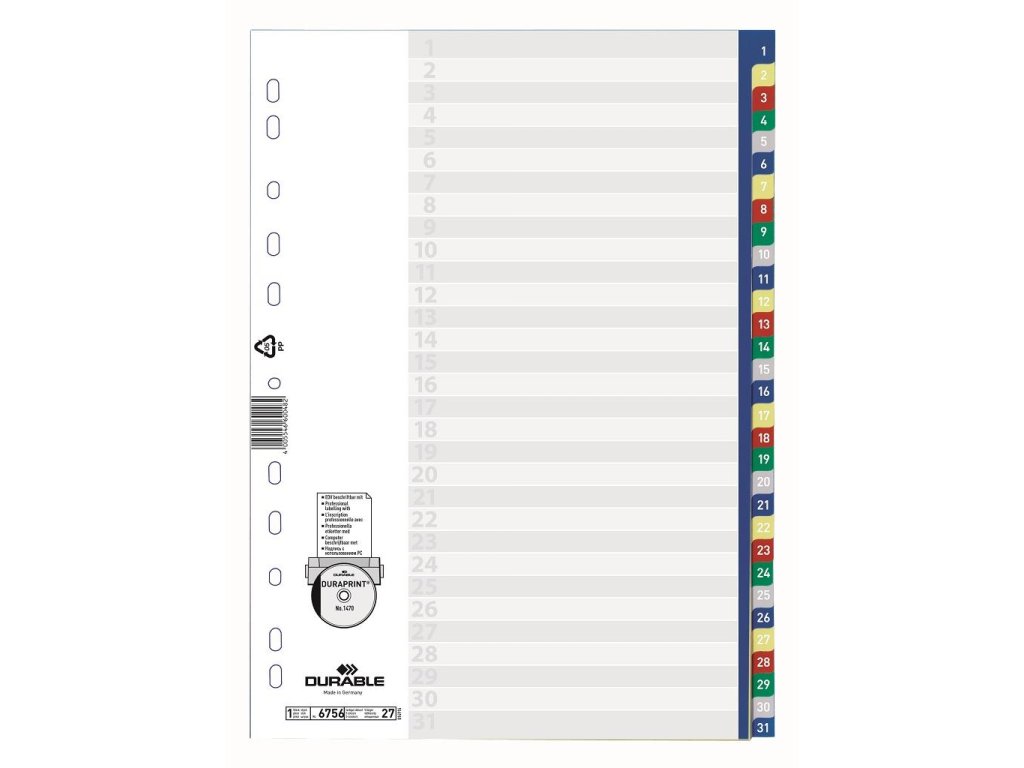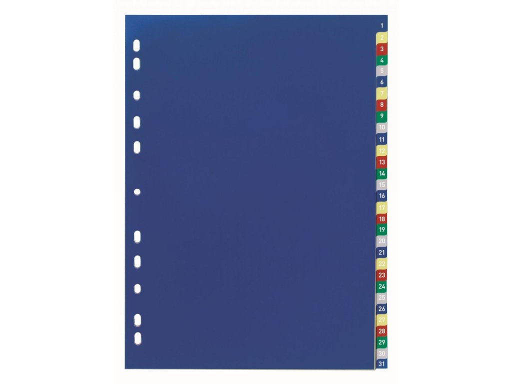 Farebný číselný rozraďovač vyrobený zo zosilneného plastu s eurodierovaním, popisovateľný papierový titulný list na ľahkú orientáciu v dokumentoch. Výsledný dokument pôsobí upravene a reprezentatívne. Väčšie balenie 20 sád.