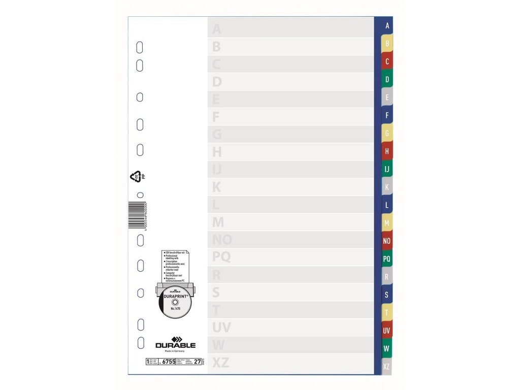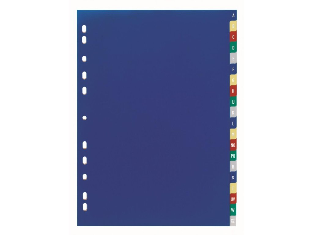 Farebný abecedný rozraďovač vyrobený zo zosilneného plastu s eurodierovaním, popisovateľný papierový titulný list na ľahkú orientáciu v dokumentoch. Výsledný dokument pôsobí upravene a reprezentatívne. Väčšie balenie 20 sád.