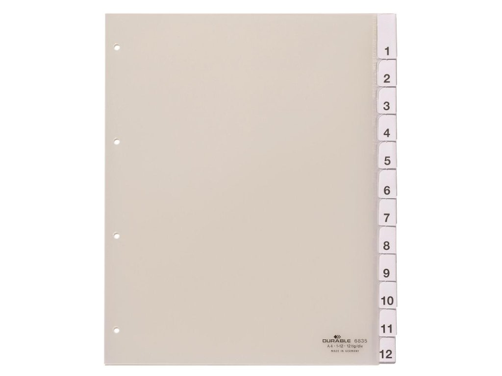 Plastový rozraďovač DURABLE s výmennými indexami 1-12 maxi