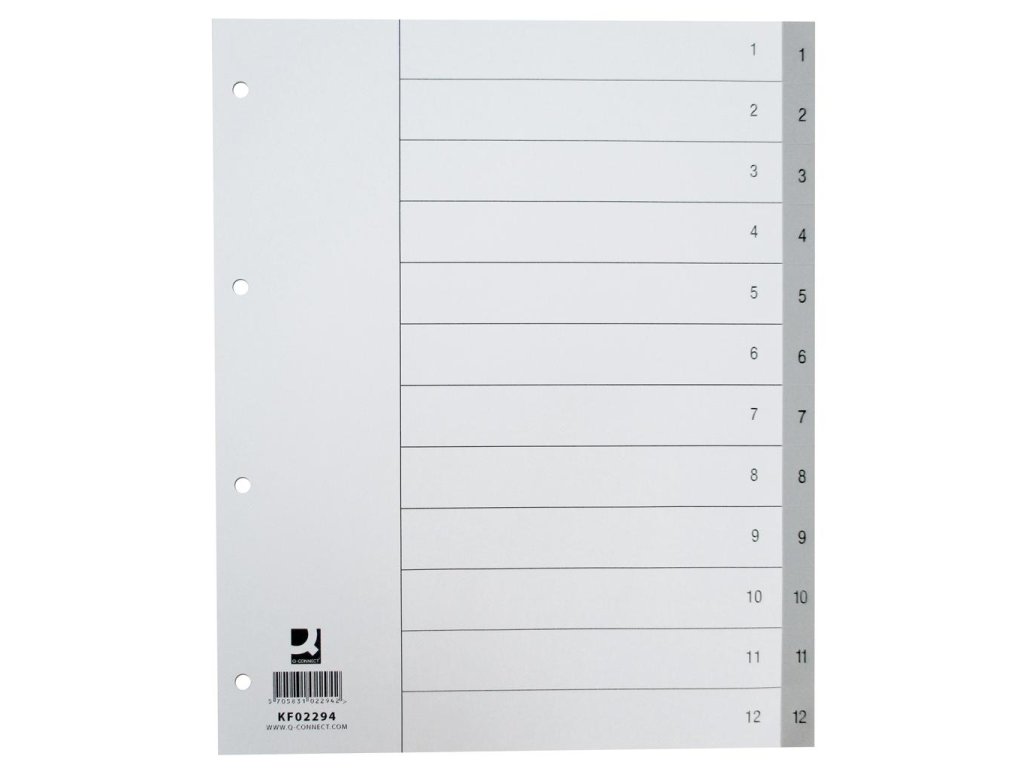 Rozšírený plastový rozraďovač formátu A4+ s eurodierovaním, 12‑dielny. Balenie jedna sada v polyesterovom sáčku.