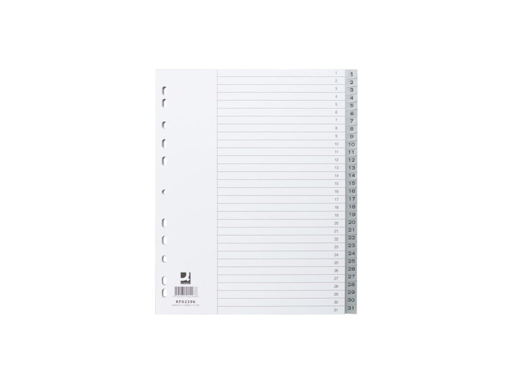 Rozšírený plastový rozraďovač formátu A4+ s eurodierovaním, 31‑dielny. Balenie jedna sada v polyesterovom sáčku.