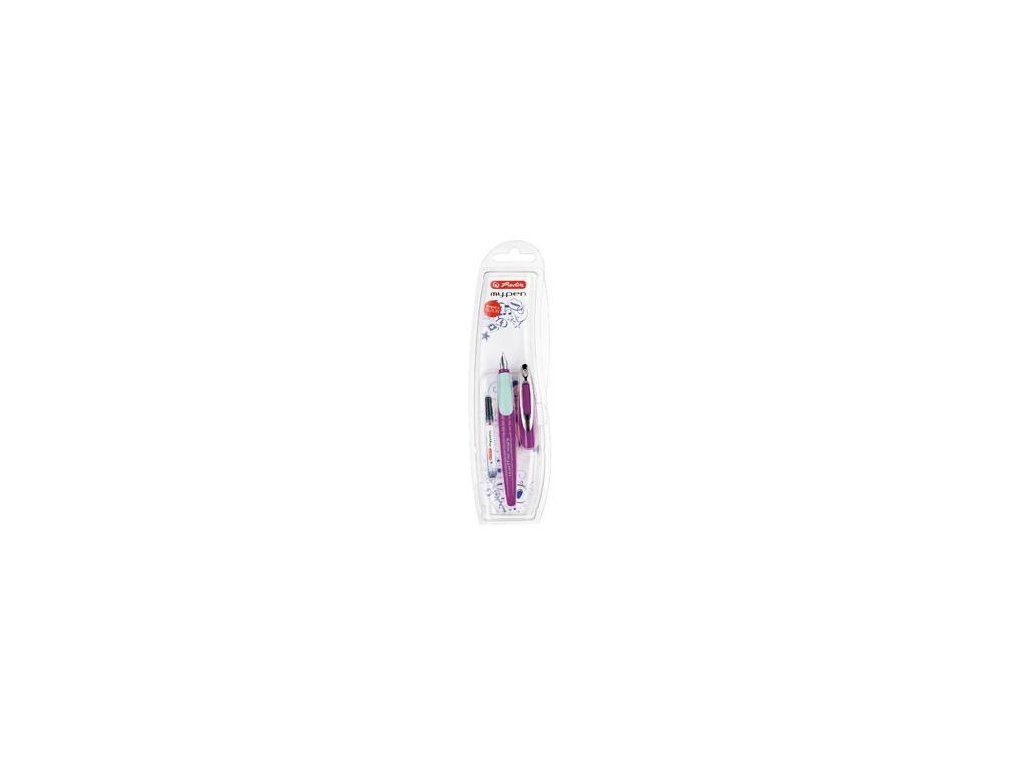 Bombičkové pero my.pen Color Blocking - hrot M z ušľachtilej ocele, ergonomický profil v mieste držania. Balenie v blistri. Farba fialová/aqua.