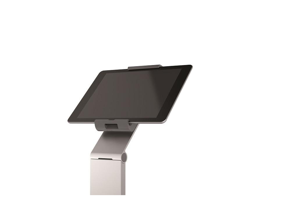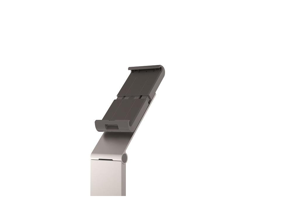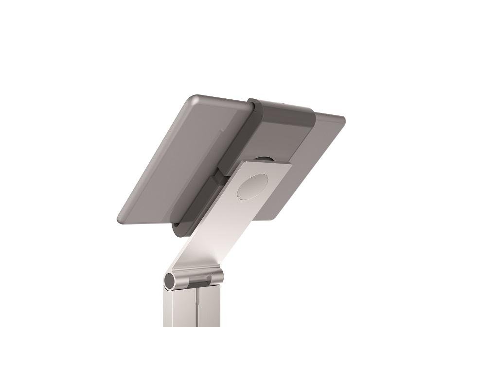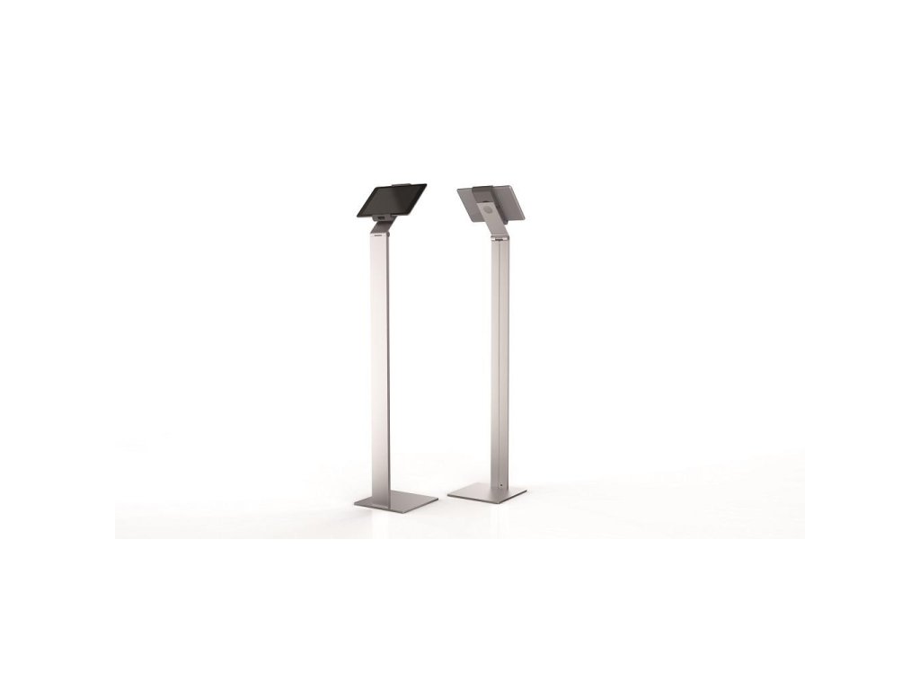 Vysoko stabilný hliníkový podlahový stojan na tablety veľkosti 7 - 13`. Flexibilný uhol nastavenia sklonu ramena 0 - 88 stupňov, ochrana proti krádeži pomocou blokovacieho mechanizmu na úchytoch a s bezpečnostným slotom na základni na štandardný káblový zámok, kanál pre kábel s organizérom káblov, nastaviteľnom v celom rozsahu výšky. Dodávaný s USB káblom. Rozmery (š × v × h) 270 × 1215 × 270 mm.