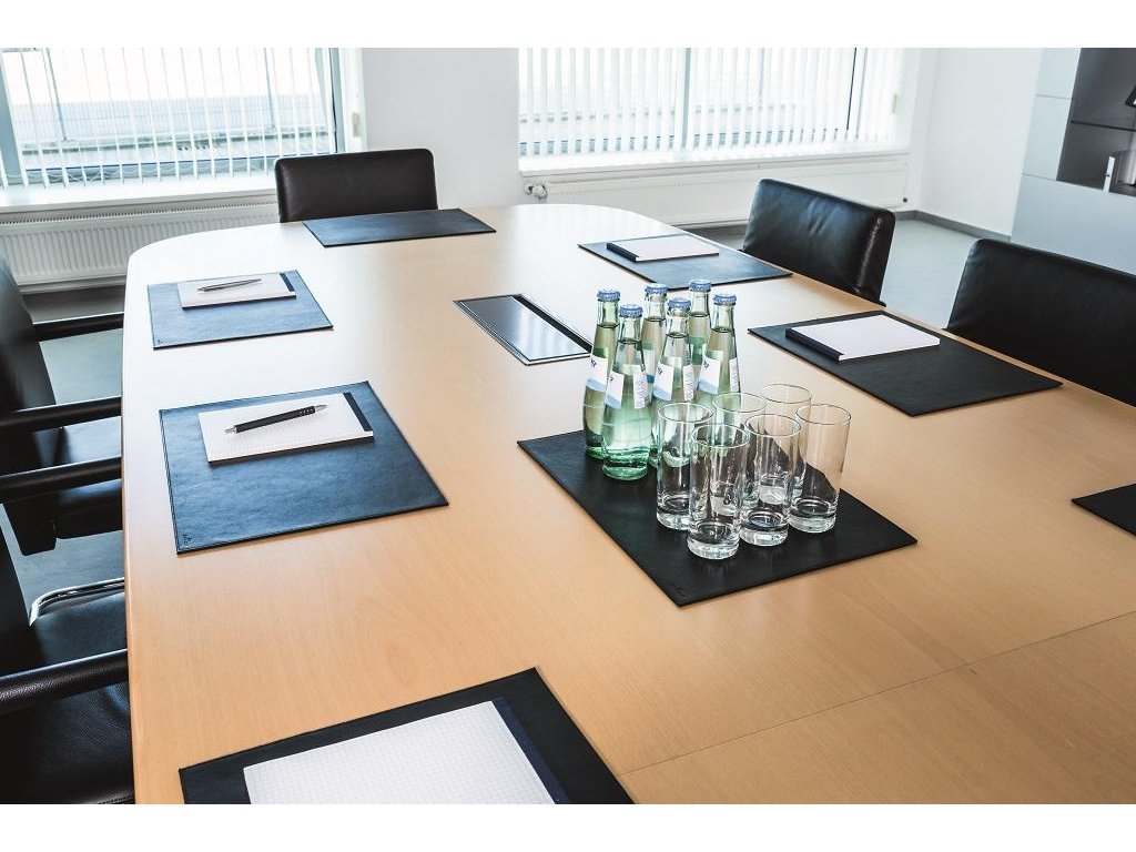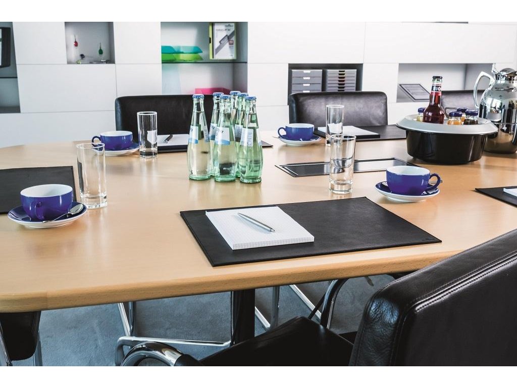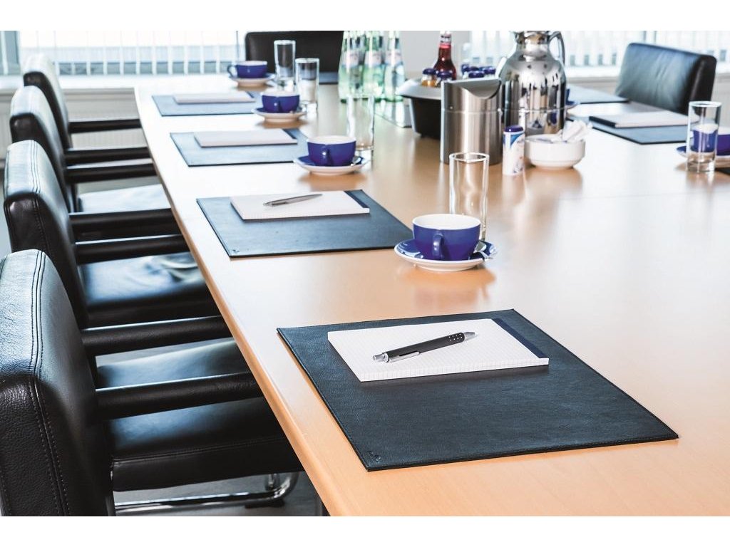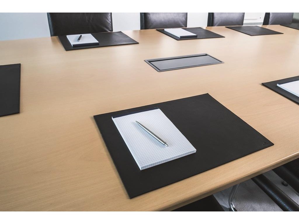 Podložka na stôl vysokej kvality vyrobená z najjemnejšej zrnitej kože. Ručná výroba, prešívaný lem, zadná strana z vysokokvalitného fleesu. Rozmery 42 × 30 cm. Farba čierna.