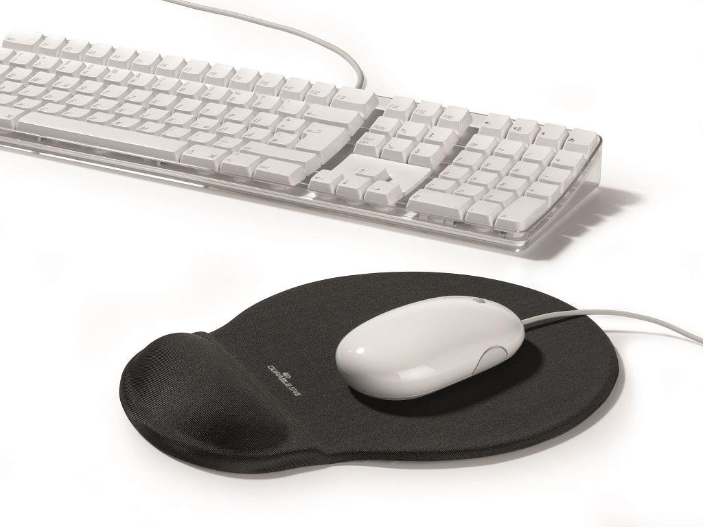 Ergonomická podložka pod myš s textilným povrchlom a zabudovanou podperou zápästia z pružného gélu. Odľahčí a masíruje zápästie. Príjemná povrchová úprava. Farba antracitová.