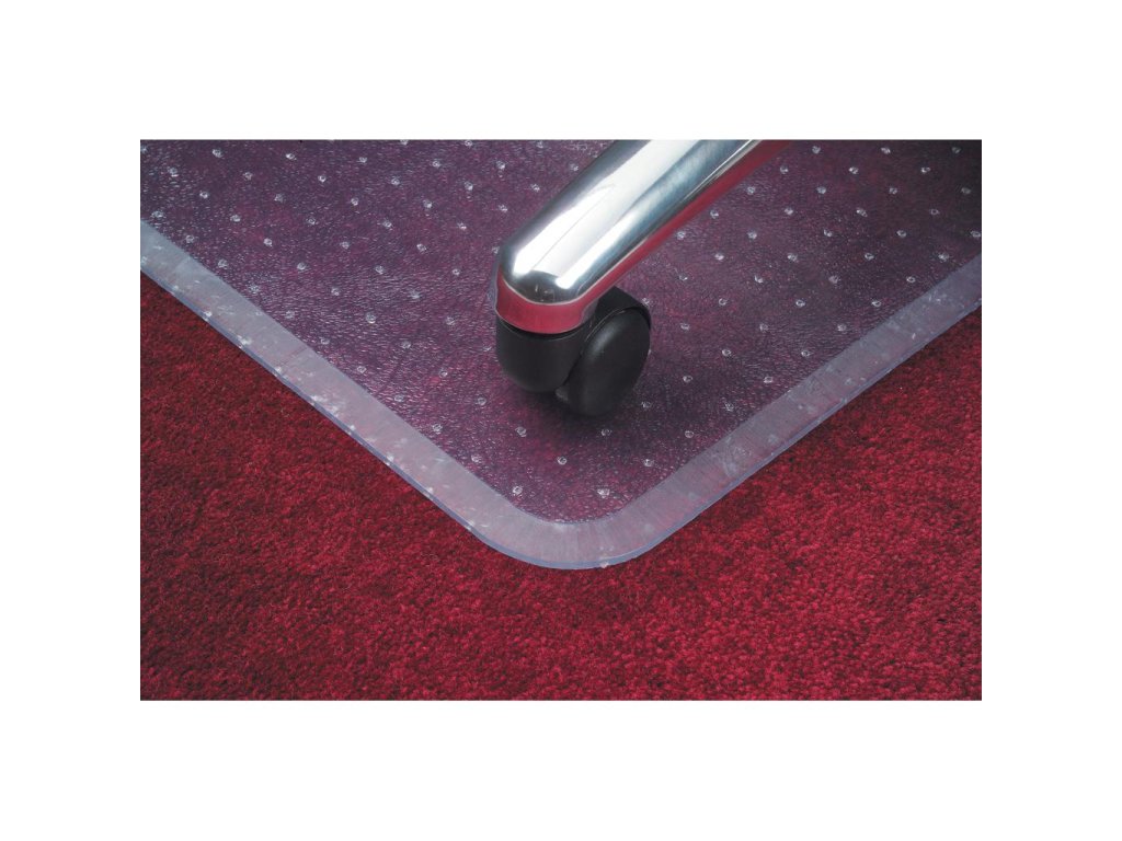 Priehľadné podložky pod stoličky hrúbky 2,2 mm z vysokokvalitného vinylu chránia koberec proti oderu, poškodeniu a vyliatej vode pri pohybe stoličky. Charakterizuje ich vysoký jas, priehľadnosť a precízne spracovanie. Oblé rohy uľahčujú nájazd stoličky na podložku. Profi lované špicaté krúžky dĺžky 5 mm v spodnej časti podložky zabraňujú pohybu podložky po koberci, pričom nepoškodzujú štruktúru koberca. Podložky si udržiavajú svoje vlastnosti pri teplote 1 - 30 °C. Neobsahujú škodlivé a jedovaté látky, ako je kadmium, olovo a ftaláty. Podložky v tvare písmena T sú ideálne pod typizovaný stôl. Uvedené rozmery sú vrátane odsadenia pod stôl cca 48 × 25 cm, resp. cca 64 × 30 cm. Rozmery 134x115cm.