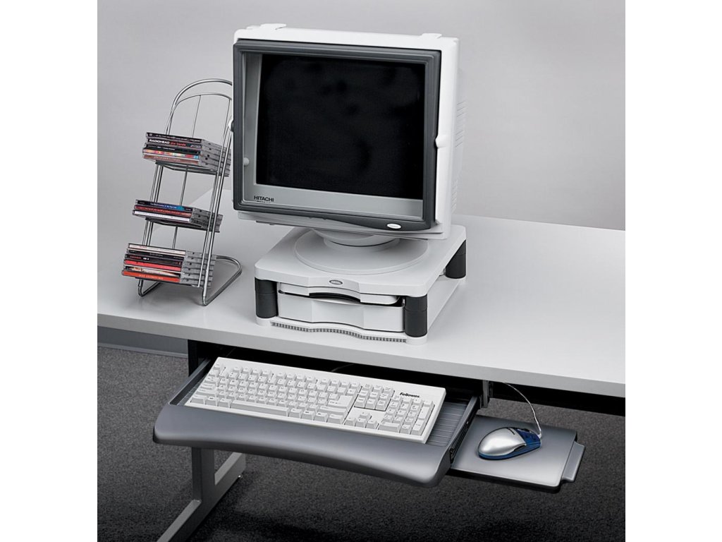 Ergonomická dizajnová zásuvka na ľubovoľnú klávesnicu, šetriaca pracovnou plochou. Vybavená sklápacou podložkou pod myš s možnosťou jej upevnenia sprava alebo zľava. Inštalácia police v troch rôznych výškach z dôvodu väčšieho komfortu. Systém na vedenie káblov, hladké posúvanie po guličkových ložiskách. Rozmery 559 x 295 x 59 mm.